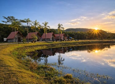 Chalés super aconchegantes à beira do lago, com clima tranquilo, muito verde ao redor e o cenário perfeito para relaxar, curtir a natureza e aproveitar momentos inesquecíveis 🌿✨